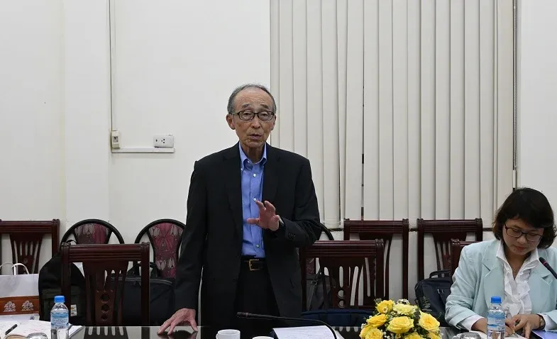Viện trưởng PGS. TS. Vũ Nguyên Thành trao đổi với ông Motoyuki Amano về ý tưởng xây dựng dự án hợp tác quốc tế giữa Tập đoàn Amano Enzyme Inc., Nhật Bản và Viện Công nghiệp thực phẩm, Việt Nam.