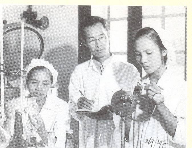 | Thứ trưởng kiêm Quyền Viện trưởng Đặng Giá cùng các cán bộ đi khảo sát và phổ biến đề tài ở các tỉnh biên giới năm 1971 | Ứng dụng kết quả nghiên cứu tinh dầu hương liệu tại nhà máy thực phẩm Hà Nội năm 1970 |
