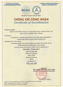 - Phòng thí nghiệm của Trung tâm đạt tiêu chuẩn ISO/IEC 17025, lĩnh vực Hóa – Sinh. Mã số VILAS 259 (Danh mục phép thử được công nhận)