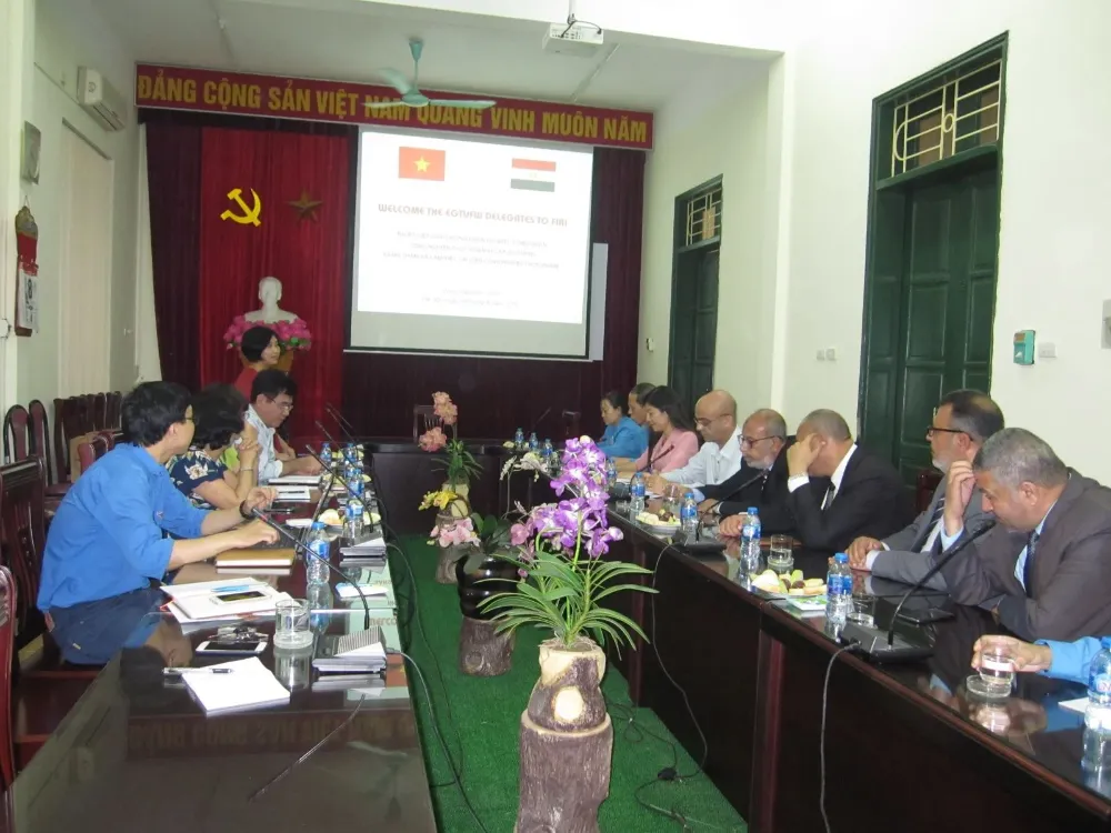 Phó Viện trưởng Bùi Quang Thuật đã chào mừng Đoàn đến thăm và làm việc tại Viện, coi đây là cơ hội tốt để cán bộ Công đoàn hai nước hoạt động trong lĩnh vực chế biến thực phẩm giao lưu, học hỏi lẫn nhau về công tác công đoàn. Phó Viện trưởng đã giới thiệu sơ lược về lịch sử, quá trình xây dựng và phát triển của Viện trong hơn 50 năm qua, đặc biệt nêu bật những thành tựu mà Viện đã đạt được trong lĩnh vực chế biến thực phẩm trong giai đoạn hiện nay, mà trong đó có sự đóng góp tích cực của Công đoàn Viện.