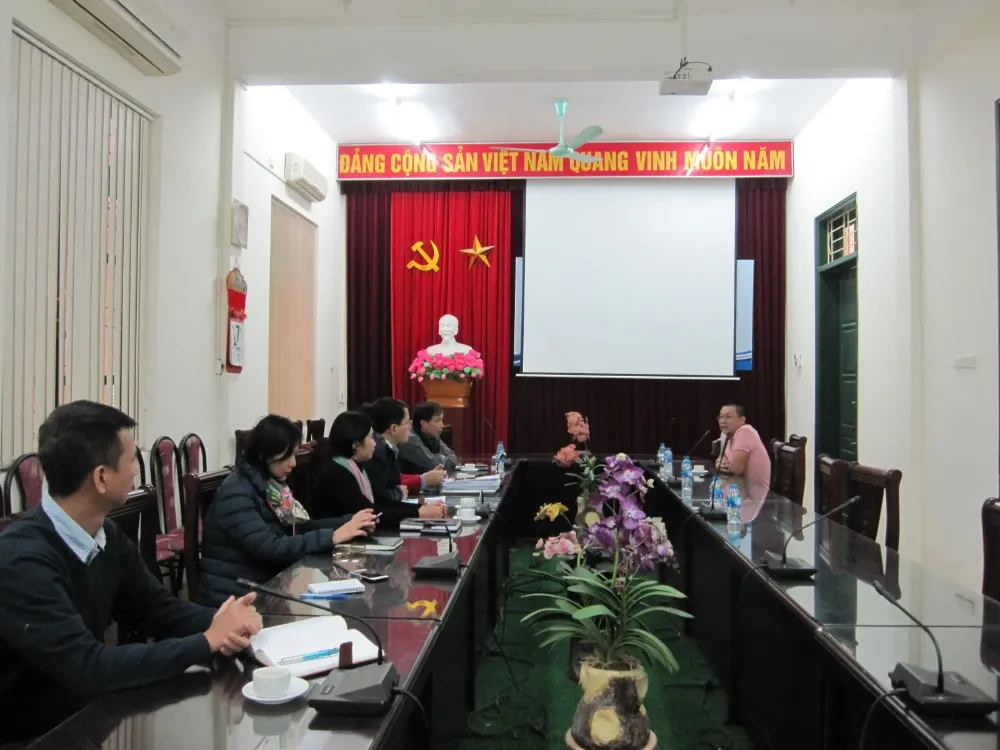 Phó Viện trưởng Vũ Nguyên Thành cùng các chủ nhiệm BM làm việc với đại diện Công ty cổ phần VietGlobe Beverages Việt Nam
