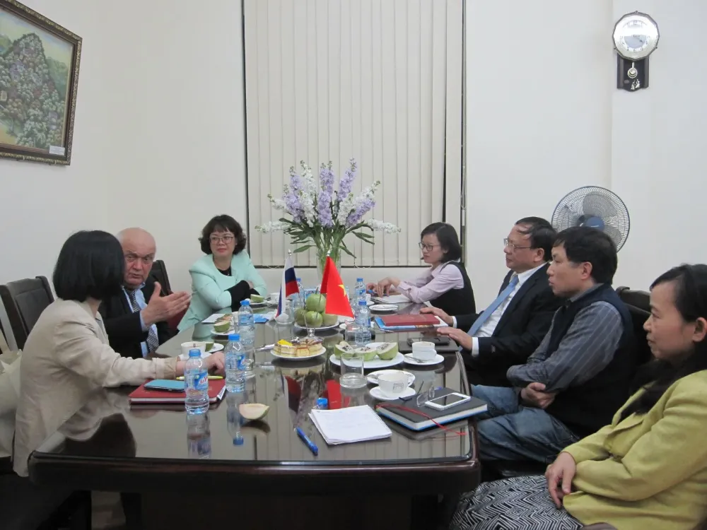 Borisenko trao đổi với Viện trưởng Lê Đức Mạnh và các cán bộ Viện