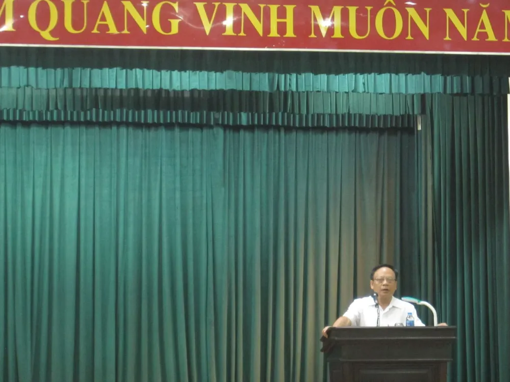 Viện trưởng Lê Đức Mạnh phát biểu chia tay cán bộ Viện