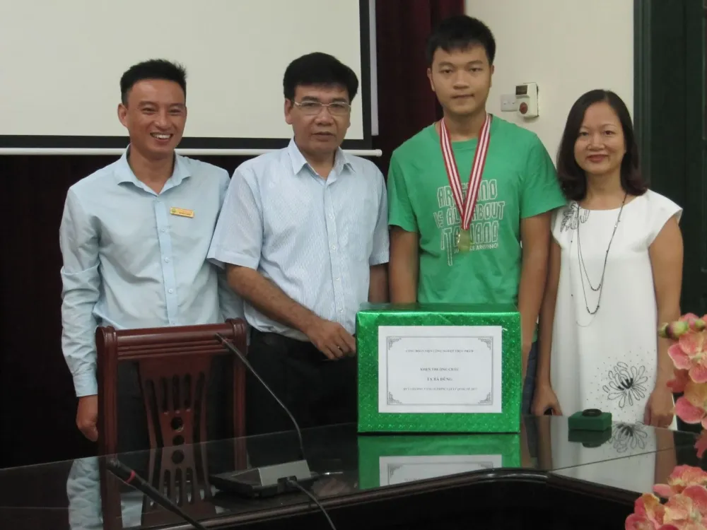 Ban Chấp hành Công đoàn đã vinh danh thành tích của cháu Tạ Bá Dũng, con trai chị Đỗ Thanh Hà – Đoàn viên Tổ Công đoàn Trung tâm Dầu, hương liệu và phụ gia thực phẩm. Cháu Tạ Bá Dũng đạt Huy chương Vàng Olympic Vật lý Quốc tế (IPHO 2017) diễn ra từ ngày 16 tháng 7 năm 2017 đến ngày 24 tháng 7 năm 2017 tại Indonesia và Huy chương Bạc Olympic Vật lý Châu Á Thái Bình Dương (APHO 2017) diễn ra từ ngày 01 tháng 5 năm 2017 đến ngày 09 tháng 5 năm 2017 tại Liên bang Nga. Thay mặt Lãnh đạo Viện, Phó Viện trưởng Bùi Quang Thuật đã trao phần thưởng cho cháu Tạ Bá Dũng, chúc mừng những thành tựu rất đáng tự hào của cháu và chúc cháu thành công hơn nữa trong học tập và trong cuộc sống. Cháu Tạ Bá Dũng đã cám ơn các bác Lãnh đạo Viện, các chú, các cô đã quan tâm, động viên và hứa sẽ cố gắng hơn nữa trong học tập.