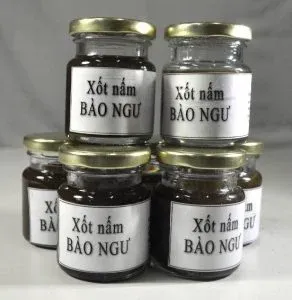Nhóm nghiên cứu đã phối hợp với Công ty TNHH một thành viên sản xuất thương mại dịch vụ HPQ – Phú Quốc để ứng dụng bột protein thủy phân từ nấm bào ngư sản xuất sốt nấm cô đặc. Theo đánh giá, bột nấm thủy phân có mùi nấm rất đặc trưng, hàm lượng protein khá cao, vị ngọt của acid glutamic nên rất phù hợp để sản xuất sản phẩm sốt nấm cô đặc dùng làm gia vị cho các món xào, món lẩu chay. Sản phẩm sốt nấm cô đặc được đóng trong chai thủy tinh 80 hoặc 200ml và thanh trùng 90oC trong 15 phút để diệt vi sinh vật.
