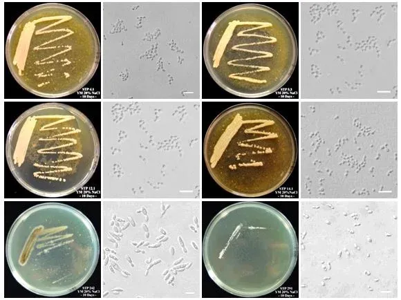 Hình ảnh khuẩn lạc và tế bào của các loài đã định tên: Candida sorbosivorans, Hyphopichia burtonii, Candida oceani, Candida etchellsii, Hortaea werneckii, Yamadazyma triangularis.