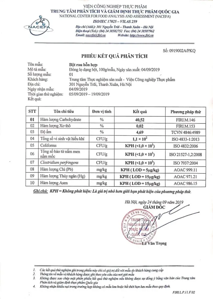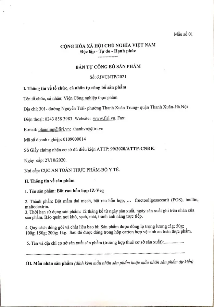 Viện Công Nghiệp Thực Phẩm Công Bố Sản Phẩm - Bột Rau Hỗn Hợp Iz-veg
